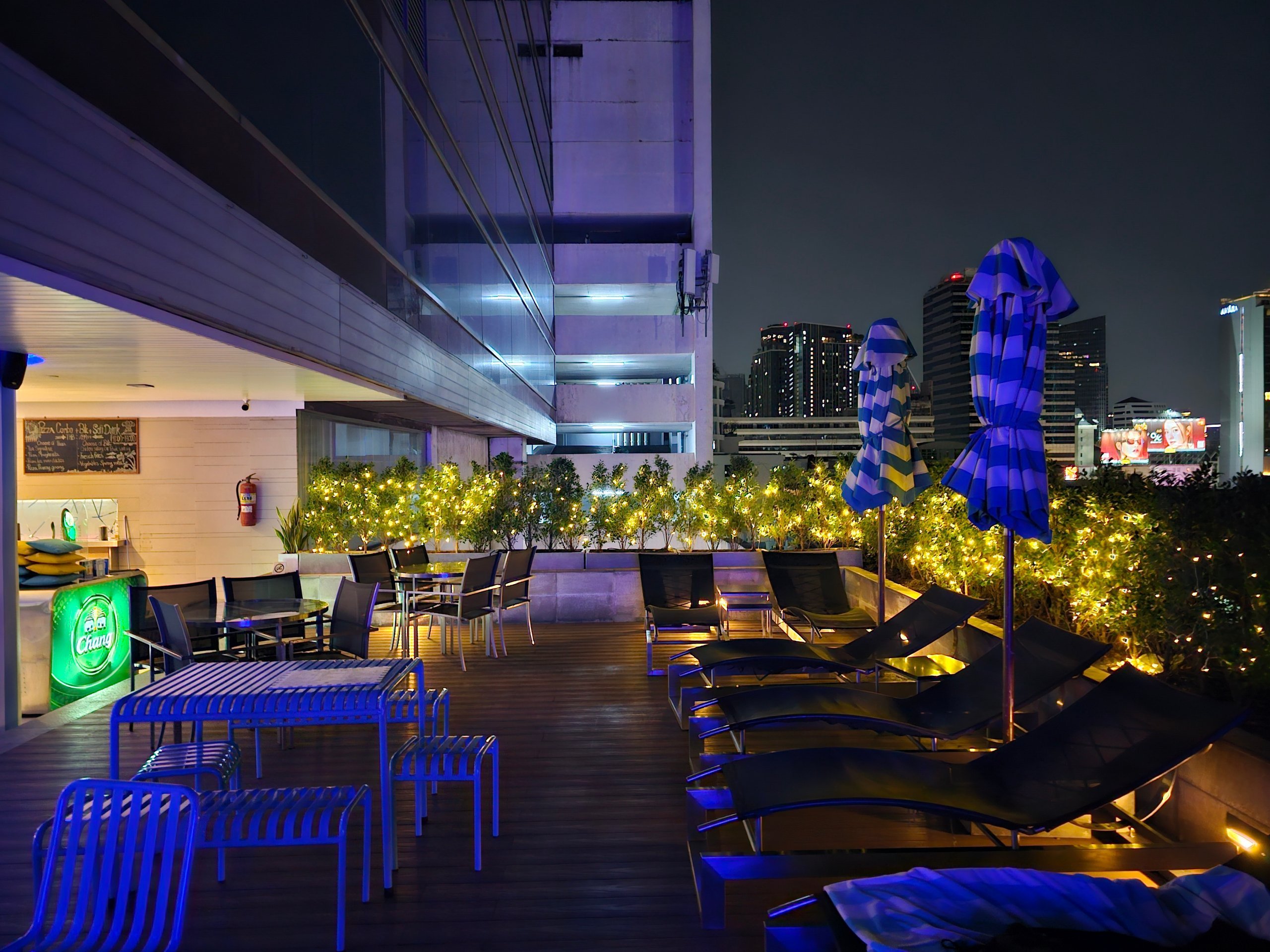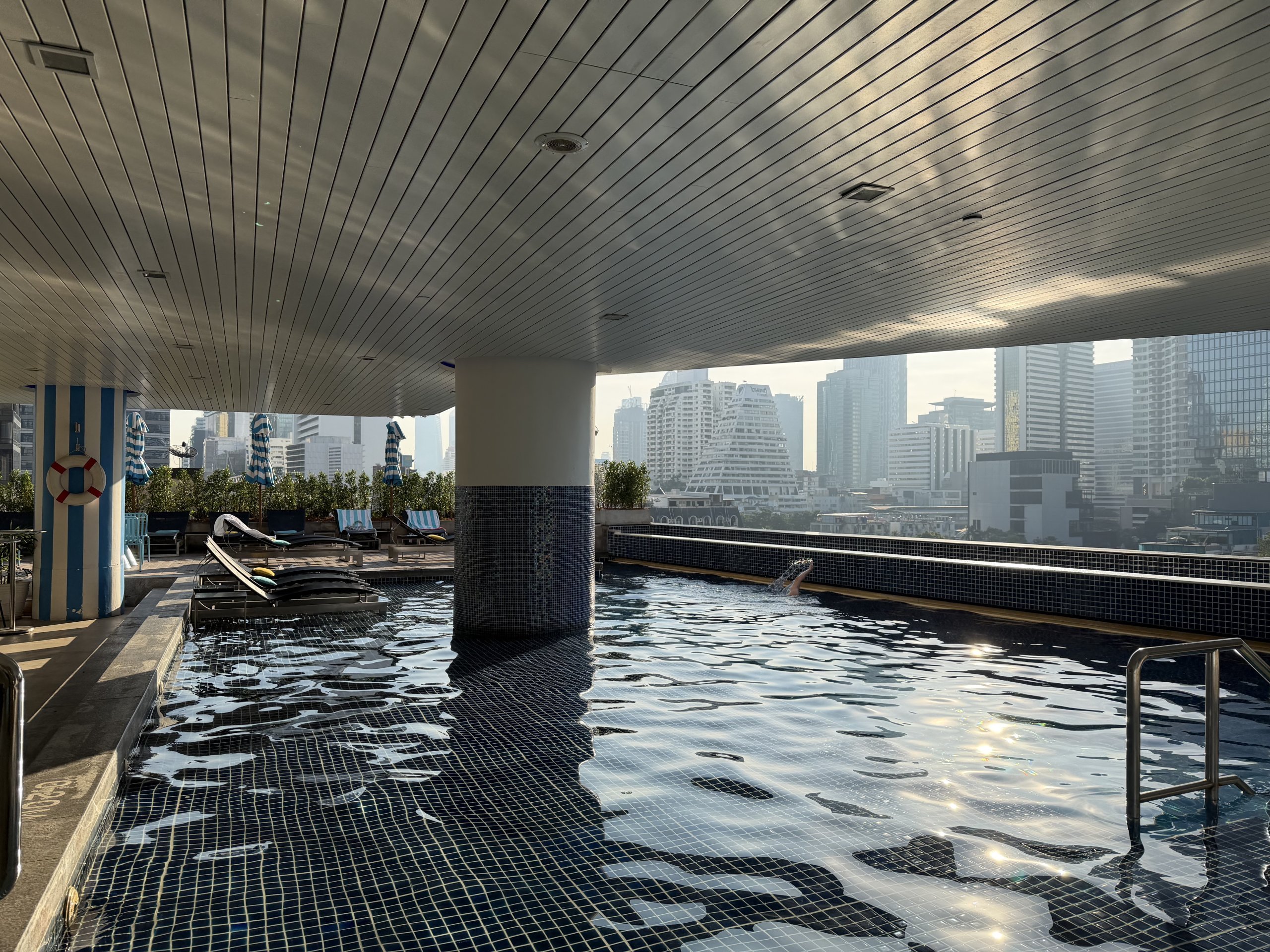 Η πισίνα δεν είναι εξαιρετικά μεγάλη, αλλά έχει ένα σημαντικό πλεονέκτημα - θέα στον ορίζοντα της Μπανγκόκ, συμπεριλαμβανομένου του 2ου ψηλότερου ουρανοξύστη , King Power Mahanknhon.