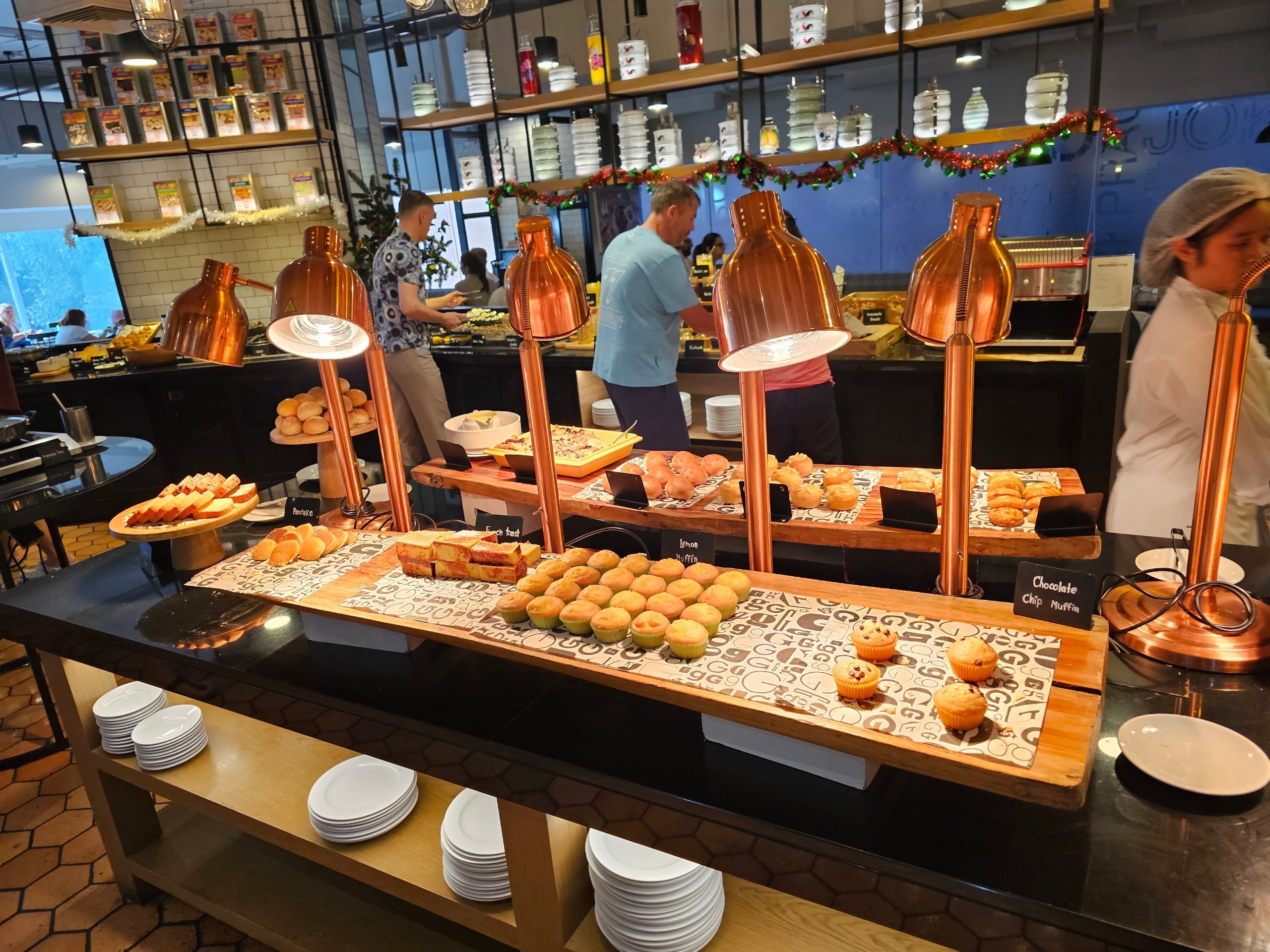 Αλλά σε σύγκριση, ας πούμε, με το Swissotel Stamford στη Σιγκαπούρη, το οποίο απευθύνεται σε παρόμοια πελατεία και στο οποίο κοιμηθήκαμε για 3 εβδομάδες μετά την Μπανγκόκ, το πρωινό στο Pullman G ήταν πολύ πιο αδύναμο.