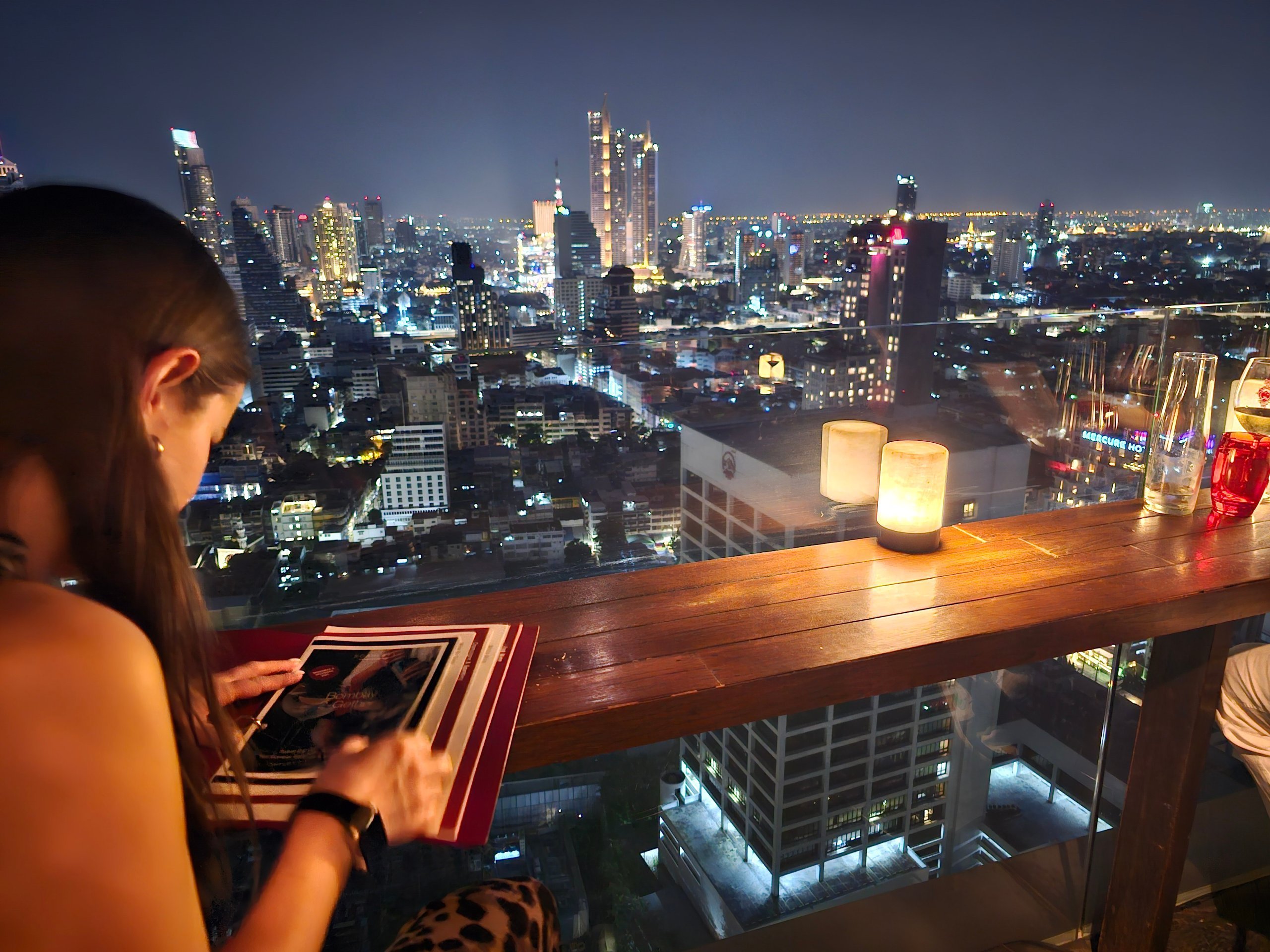 Η ατμόσφαιρα είναι λίγο διαφορετική από τα εμβληματικά μπαρ στον τελευταίο όροφο της Μπανγκόκ - είναι λιγότερο τουριστική και πιο χαλαρή.