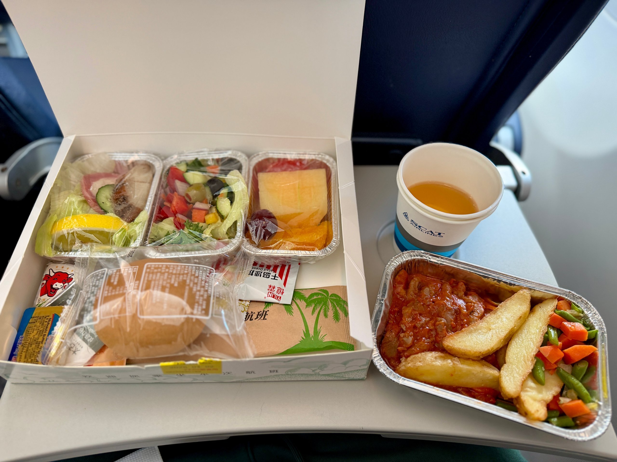 Η αναχώρηση ήταν αργά το απόγευμα από την Πράγα με προσγείωση λίγο πριν από το μεσημέρι στην Κίνα. Έτσι το μενού για το δείπνο ήταν ικανοποιητικό, μόνο για το πρωινό περίμενα πάλι κάτι άλλο εκτός από κοτόπουλο ή μοσχάρι.