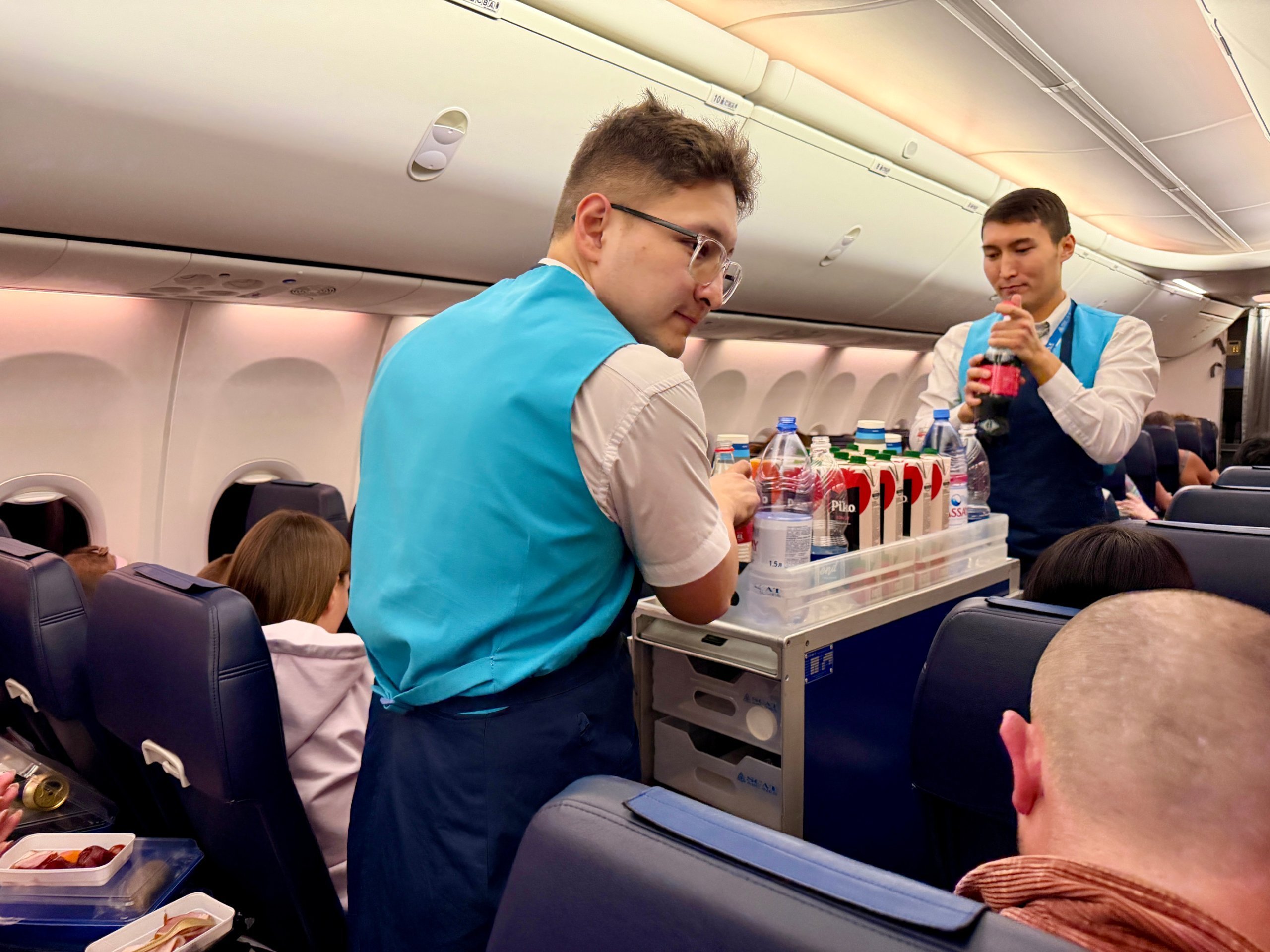 Περίπου μία ώρα μετά την απογείωση, το πλήρωμα της πτήσης άρχισε να στήνει το σέρβις και να μοιράζει αναψυκτικά. Υπήρχε πάντα μια επιλογή από κοτόπουλο και ζυμαρικά ή μοσχάρι και ρύζι.