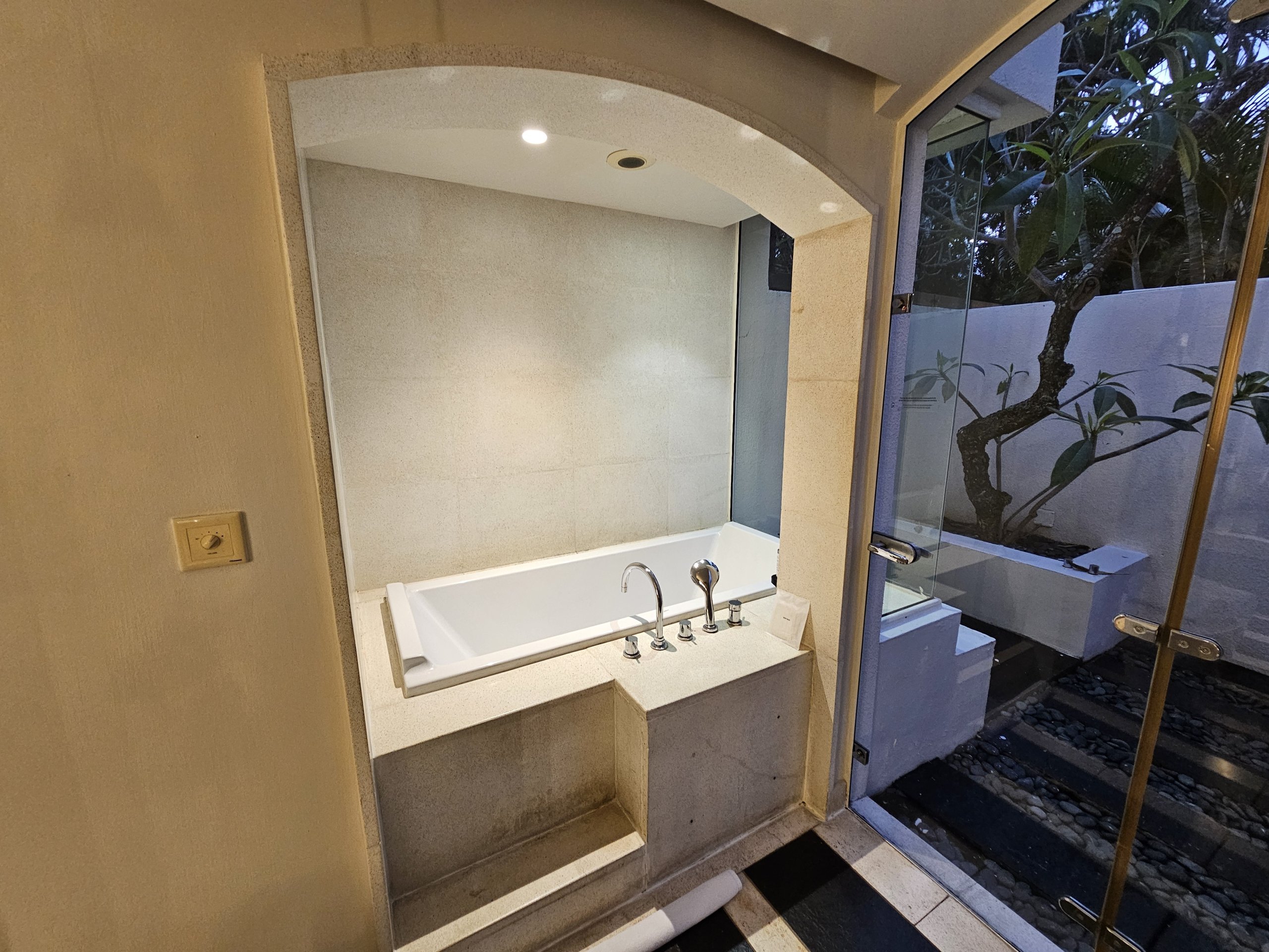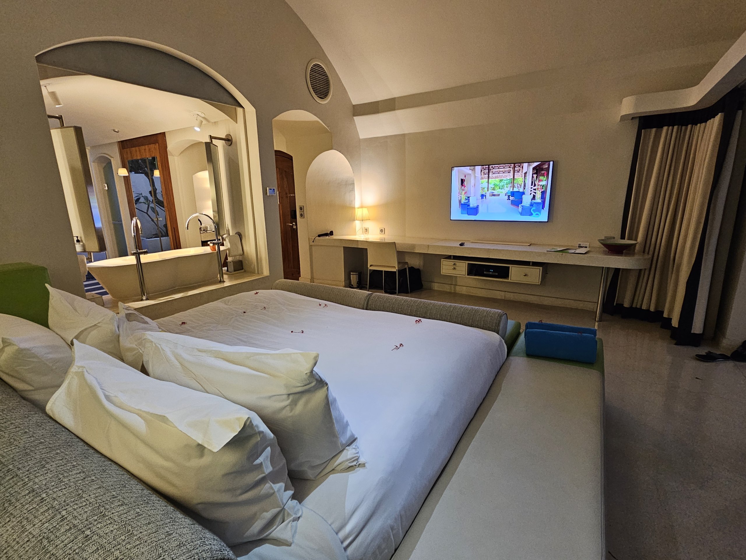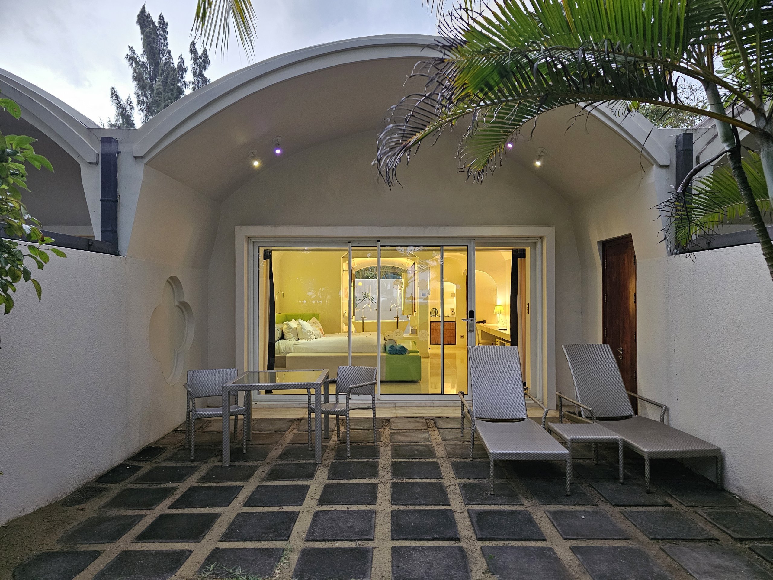 Έμεινα στο ξενοδοχείο για 4 διανυκτερεύσεις και επέλεξα τη δεύτερη χαμηλότερη κατηγορία δωματίου SO Suite με ιδιωτική βεράντα με θέα στον κήπο.