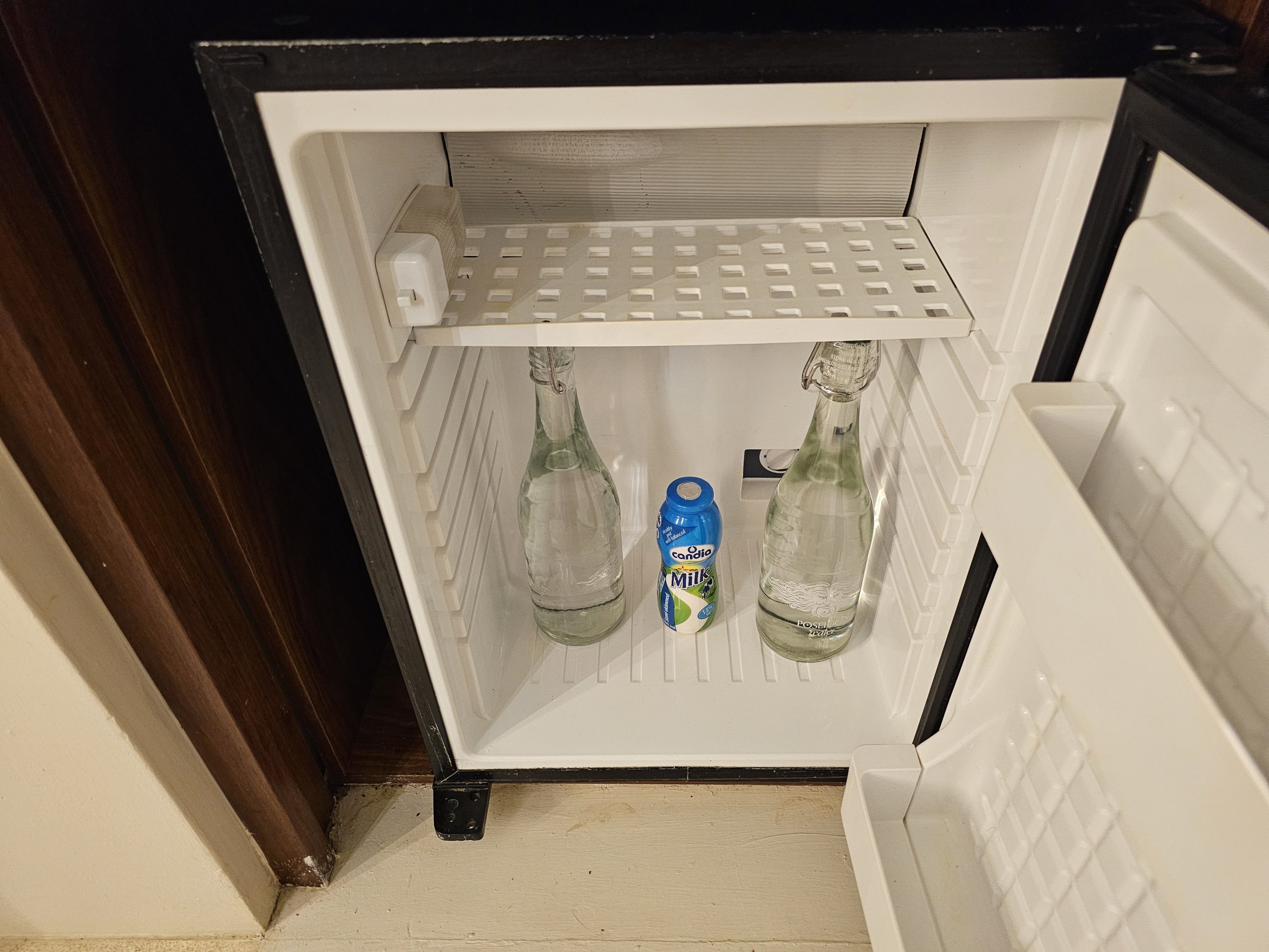 Η σουίτα είναι ευρύχωρη και πολύ ευάερη. Αμέσως κατά την είσοδο, υπάρχει ένα ψυγείο στο διάδρομο με δύο μπουκάλια νερό και ένα μπουκάλι γάλα - δωρεάν κατανάλωση.