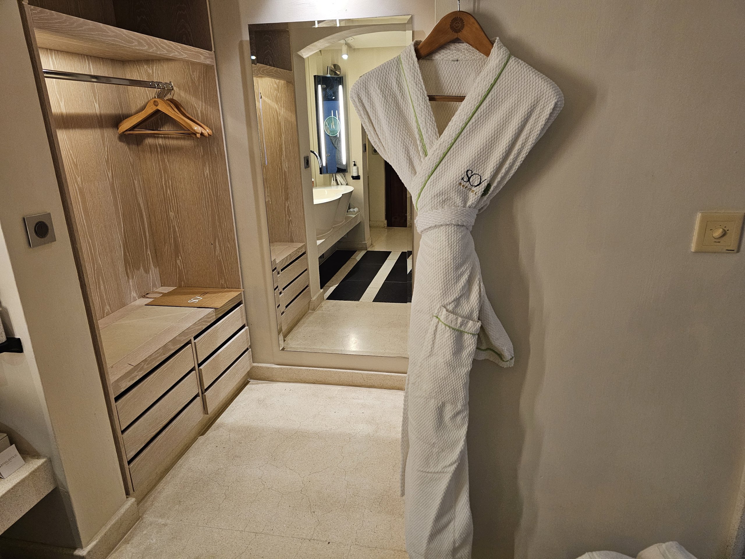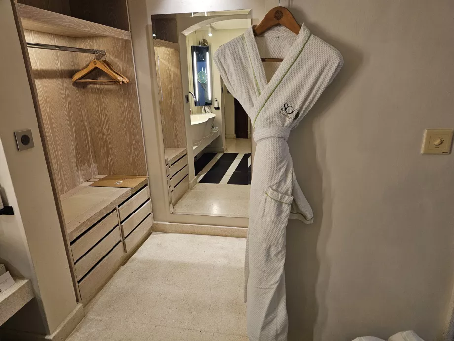 Στην ντουλάπα υπάρχουν παντόφλες, μπουρνούζι, στεγνωτήρας μαλλιών, μεγάλες πετσέτες κατάλληλες για παραμονή στην πισίνα, καθώς και μια τσάντα για τα βρώμικα ρούχα που θα πλυθούν από την υπηρεσία του ξενοδοχείου.