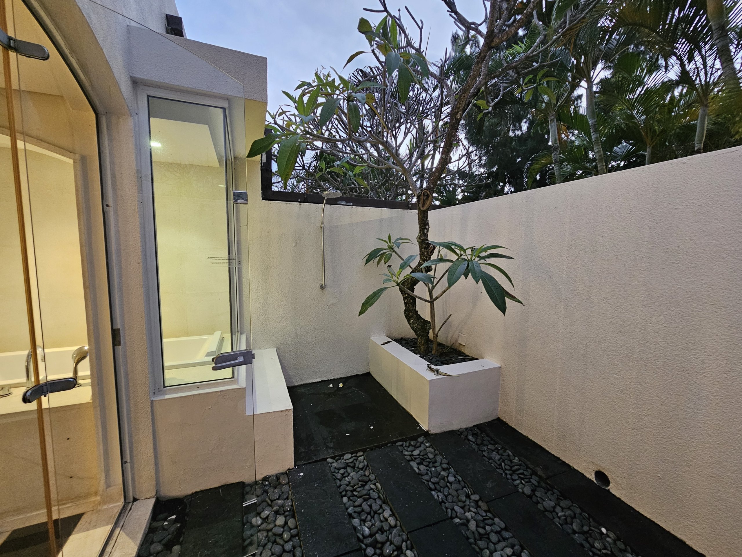 Το δωμάτιο διαθέτει δύο εισόδους. Μία κύρια και μία απευθείας στην εξωτερική βεράντα με καθίσματα και θέα στον κήπο και προς τον ωκεανό, ο οποίος απέχει περίπου 100 μέτρα.
