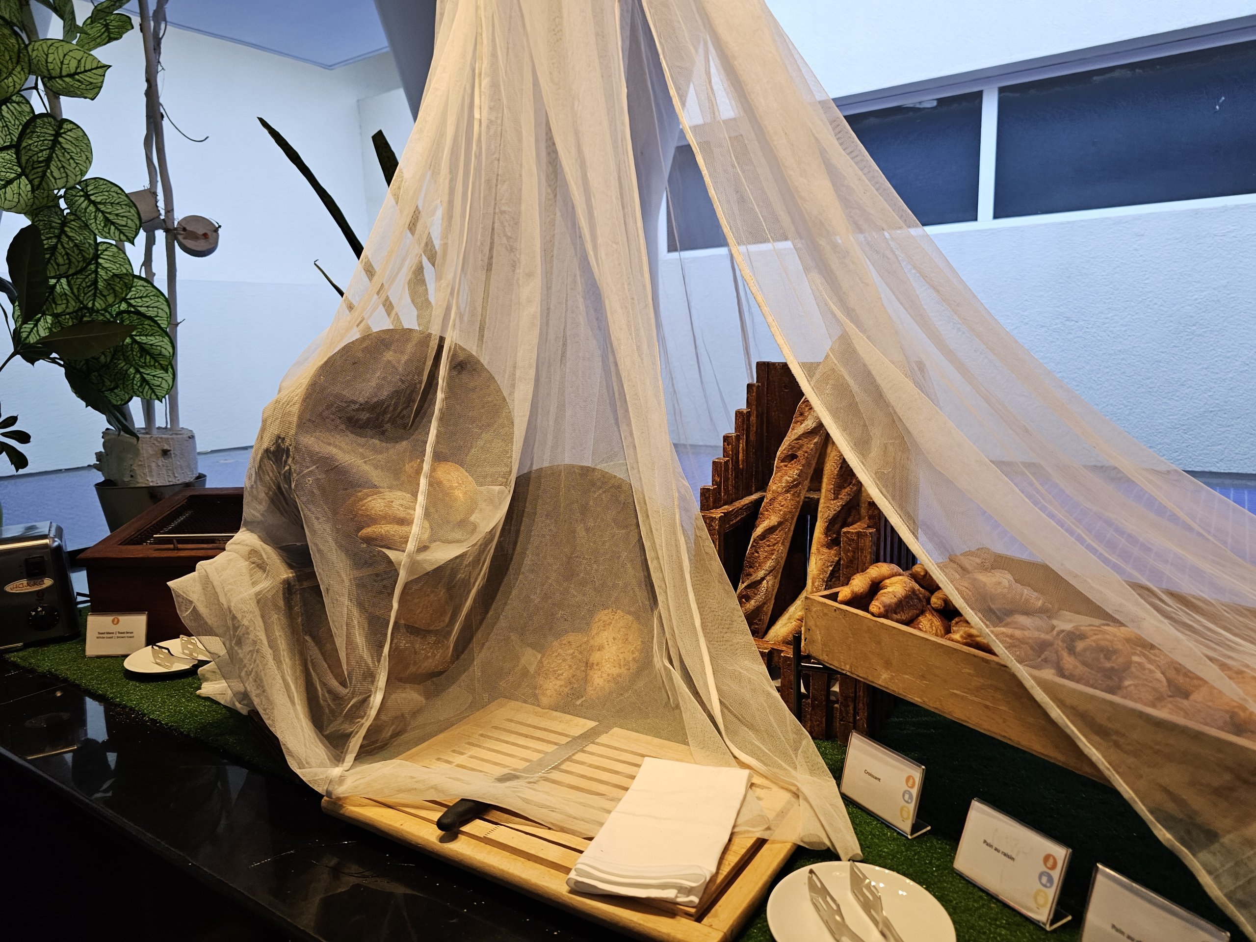 Τα γλυκά μπορεί να είναι καλυμμένα με δίχτυ, αλλά επειδή όλος ο χώρος είναι de facto εξωτερικός, το δίχτυ συχνά παρασύρεται από τον άνεμο, τον οποίο συναντούν τα σμήνη των σπουργιτιών, τα οποία πέφτουν ιδιαίτερα πάνω στα κρουασάν και τα pain-au-chocolat.