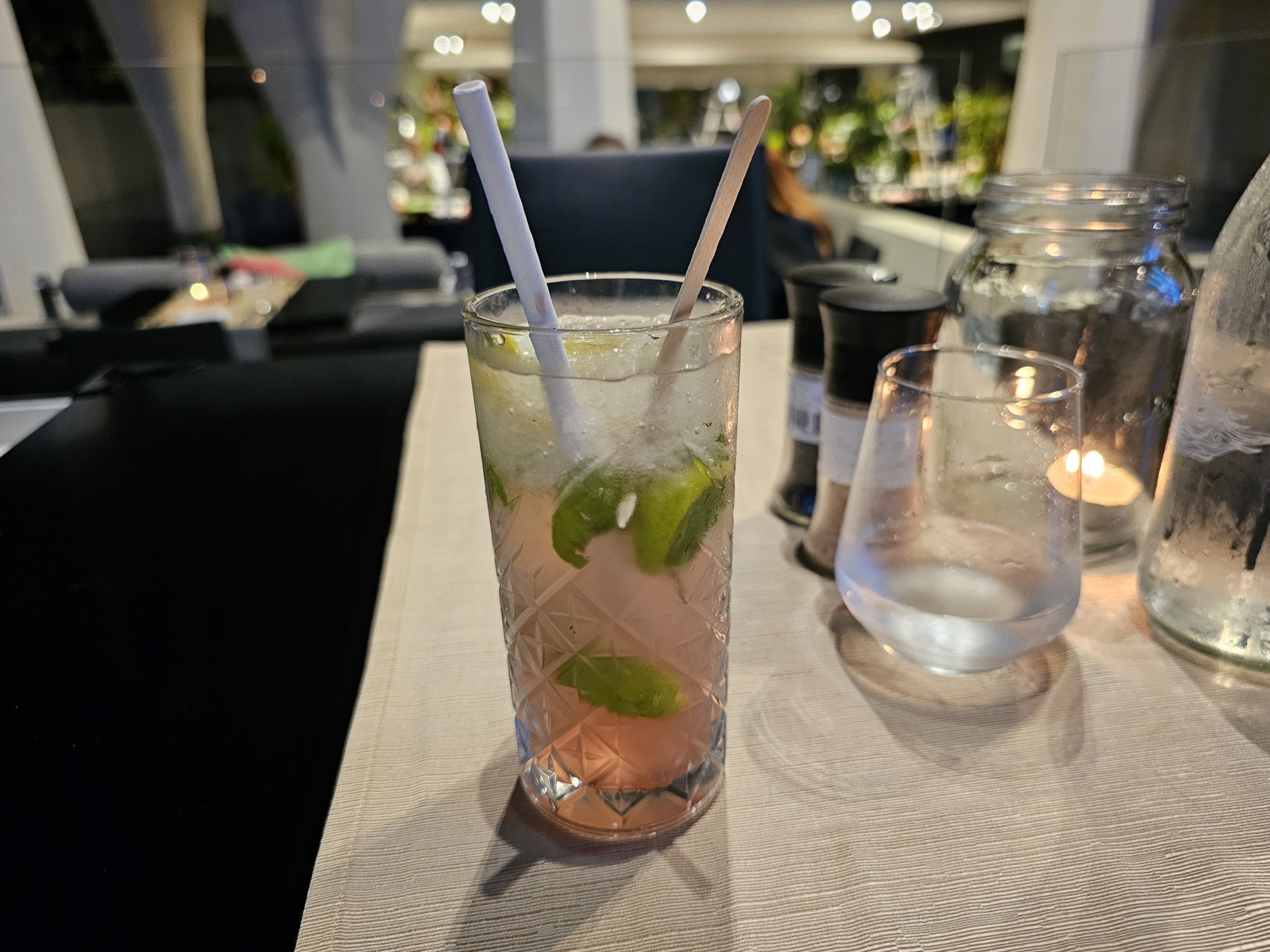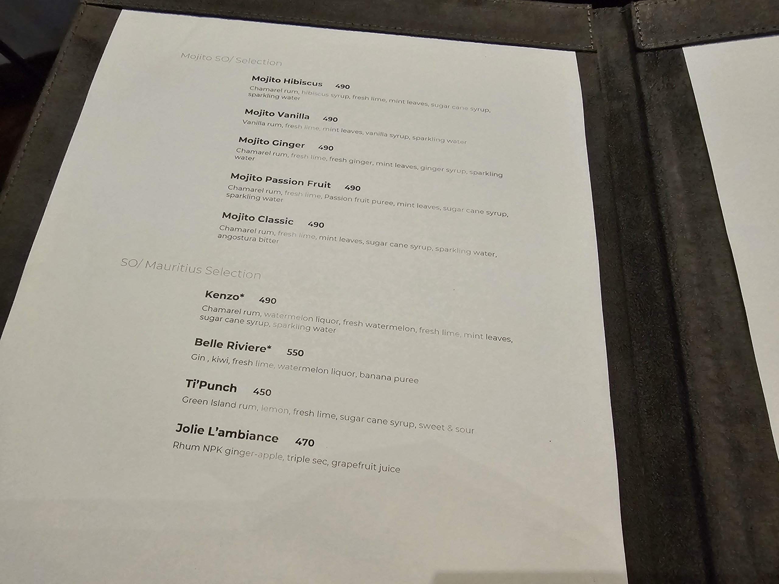 Ήπια επίσης ένα υπέροχο μοχίτο με ιβίσκο στο μπαρ Takamaka μετά το δείπνο με 490 mur.