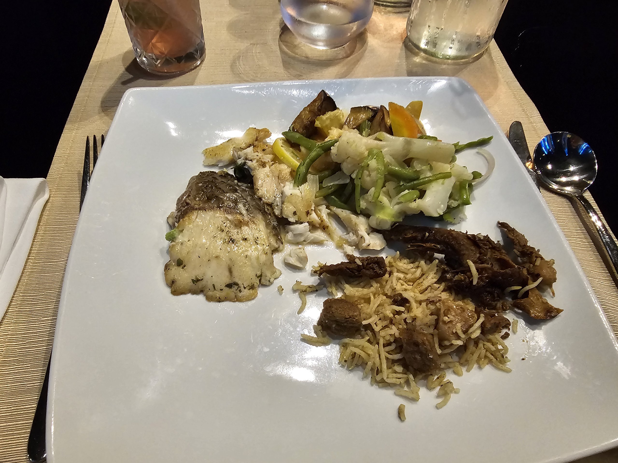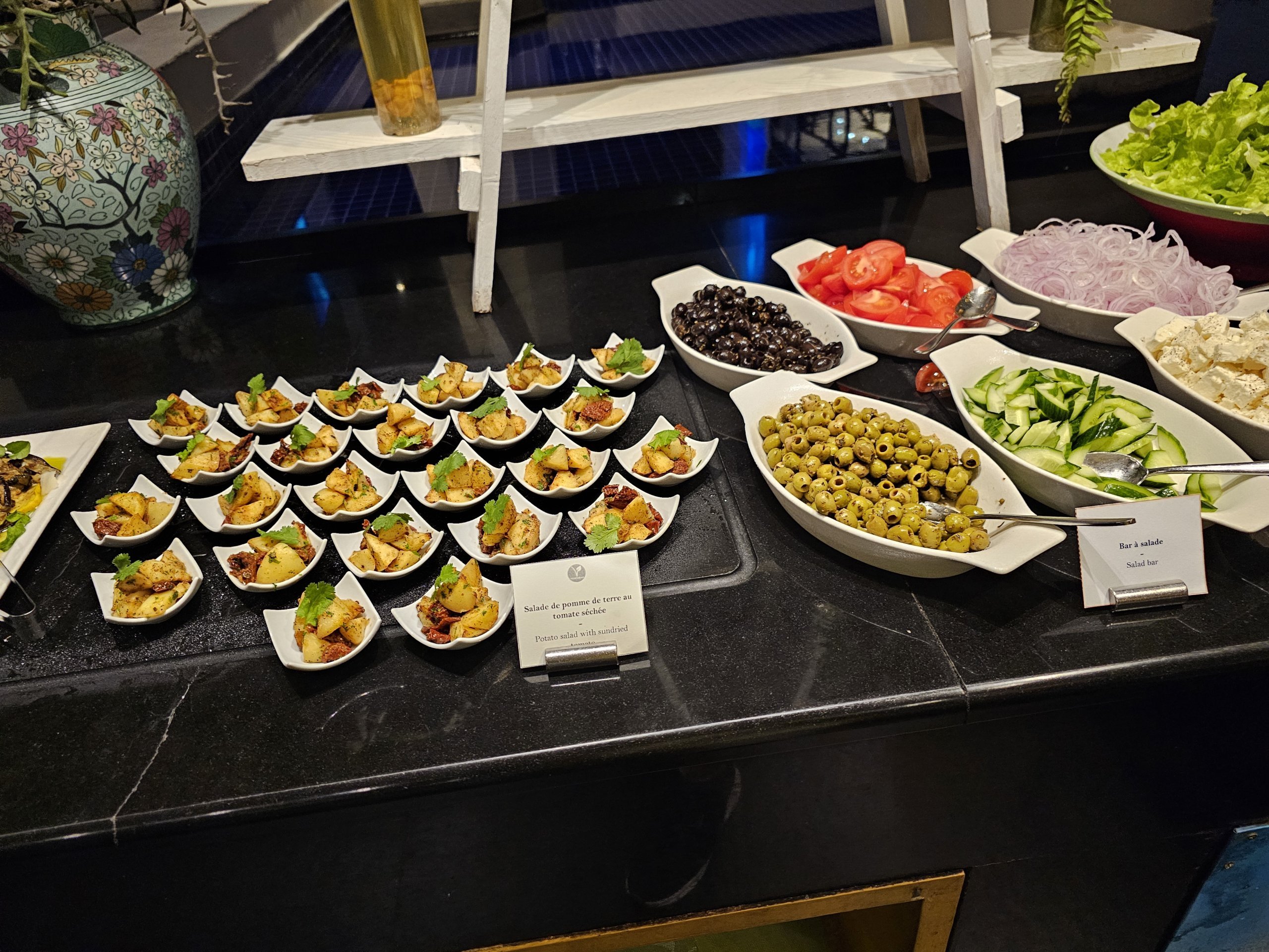 Ωστόσο, η επιλογή φαγητού για το δείπνο είναι αρκετά εκτεταμένη - υπάρχουν πάντα τουλάχιστον 6 διαφορετικά ζεστά πιάτα και μια μεγάλη ποικιλία από κρύα σνακ, σαλάτες και επαλείψεις.