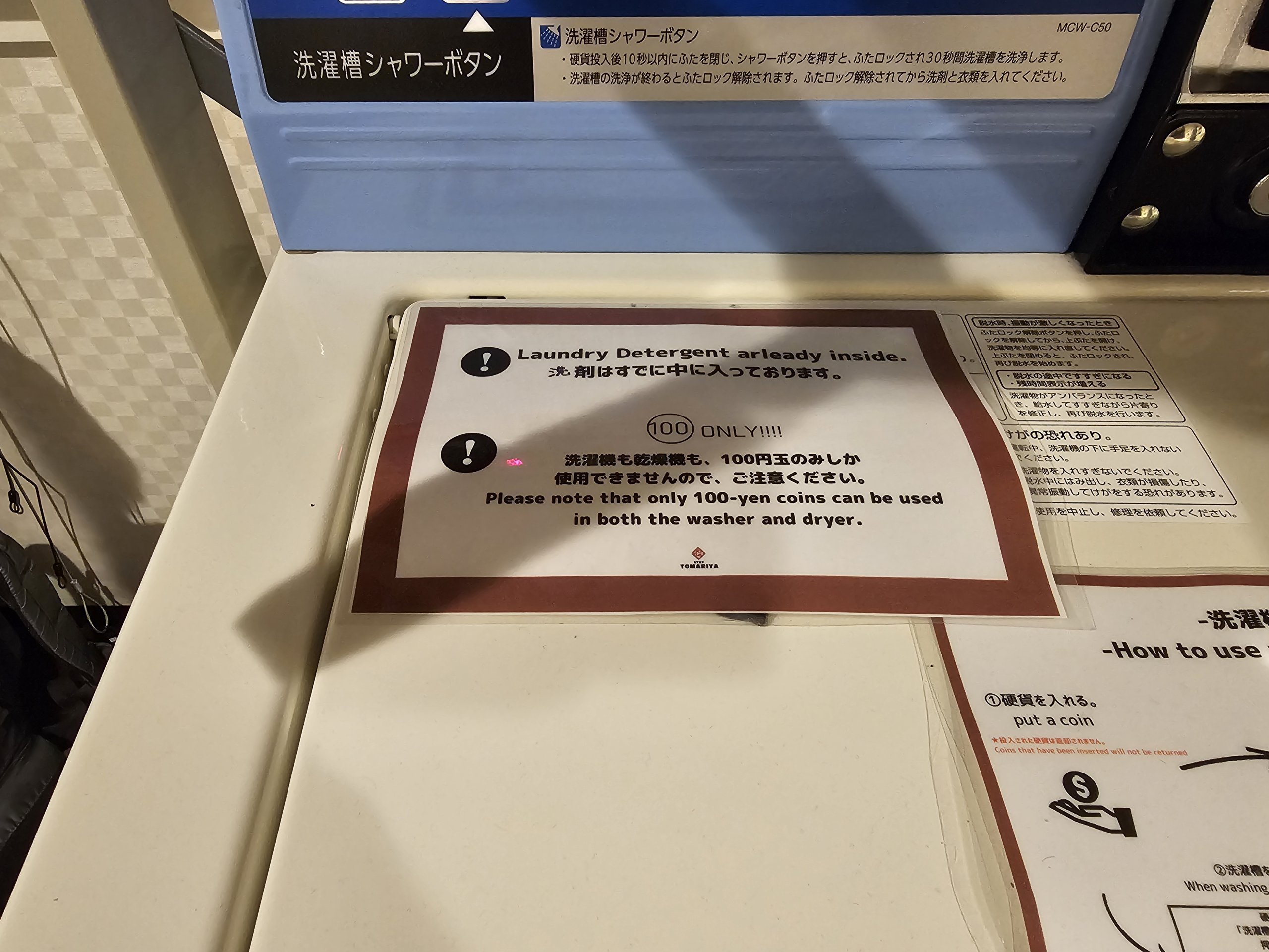 - πλυντήριο ρούχων και στεγνωτήριο ρούχων (300 jpy - μπορεί να πληρωθεί μόνο με κέρματα των 100 γιεν)