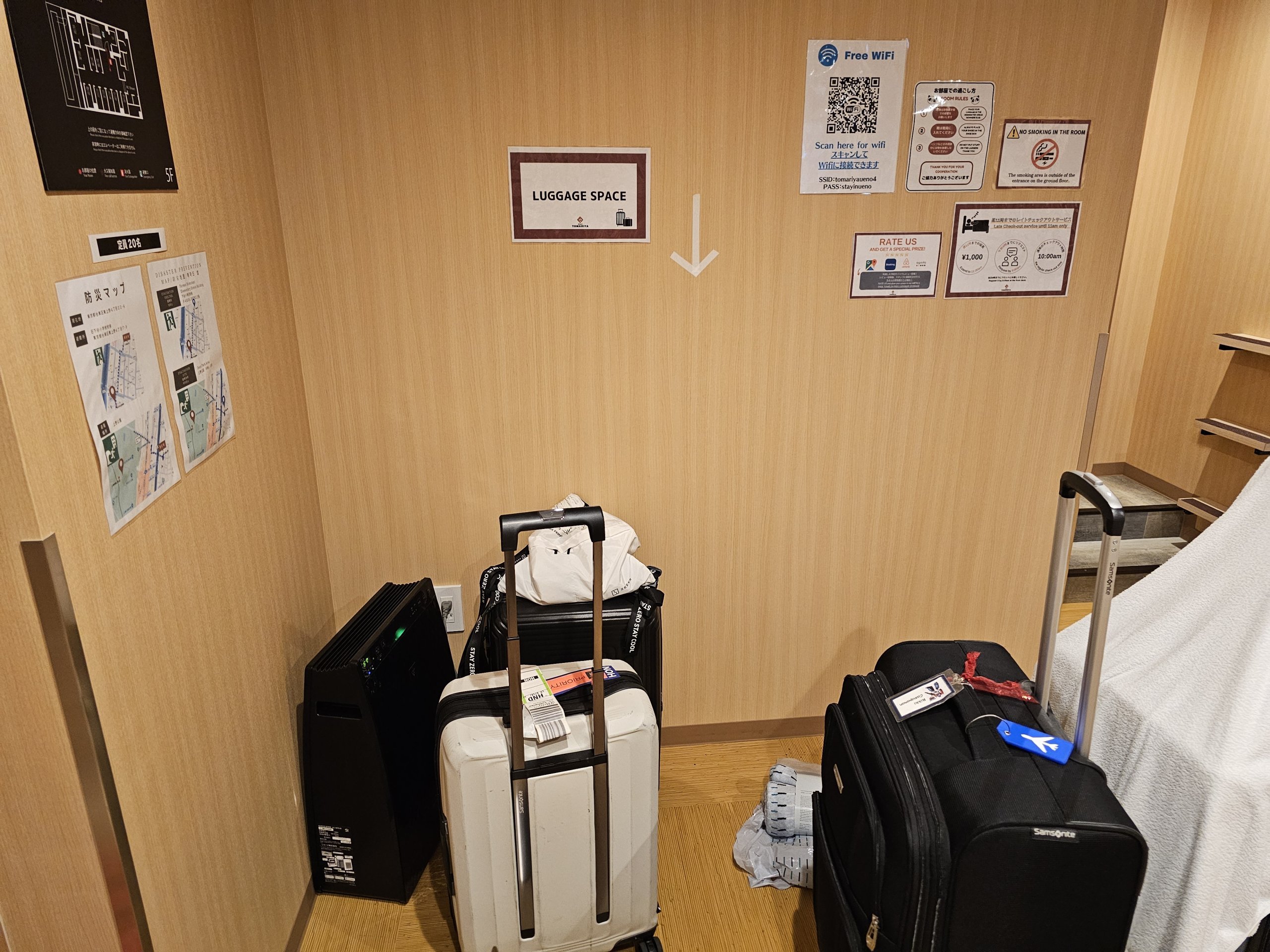 Δεν υπάρχει πραγματικά πολύς χώρος εδώ, οπότε είναι λογικό να έχετε μαζί σας μόνο ένα σακίδιο με τα απαραίτητα, και αν δεν θέλετε να αφήσετε τις κύριες αποσκευές σας αφύλακτες στη μέση του κοινού χώρου τη νύχτα, μπορείτε να χρησιμοποιήσετε τον χώρο αποσκευών στον κάτω όροφο.