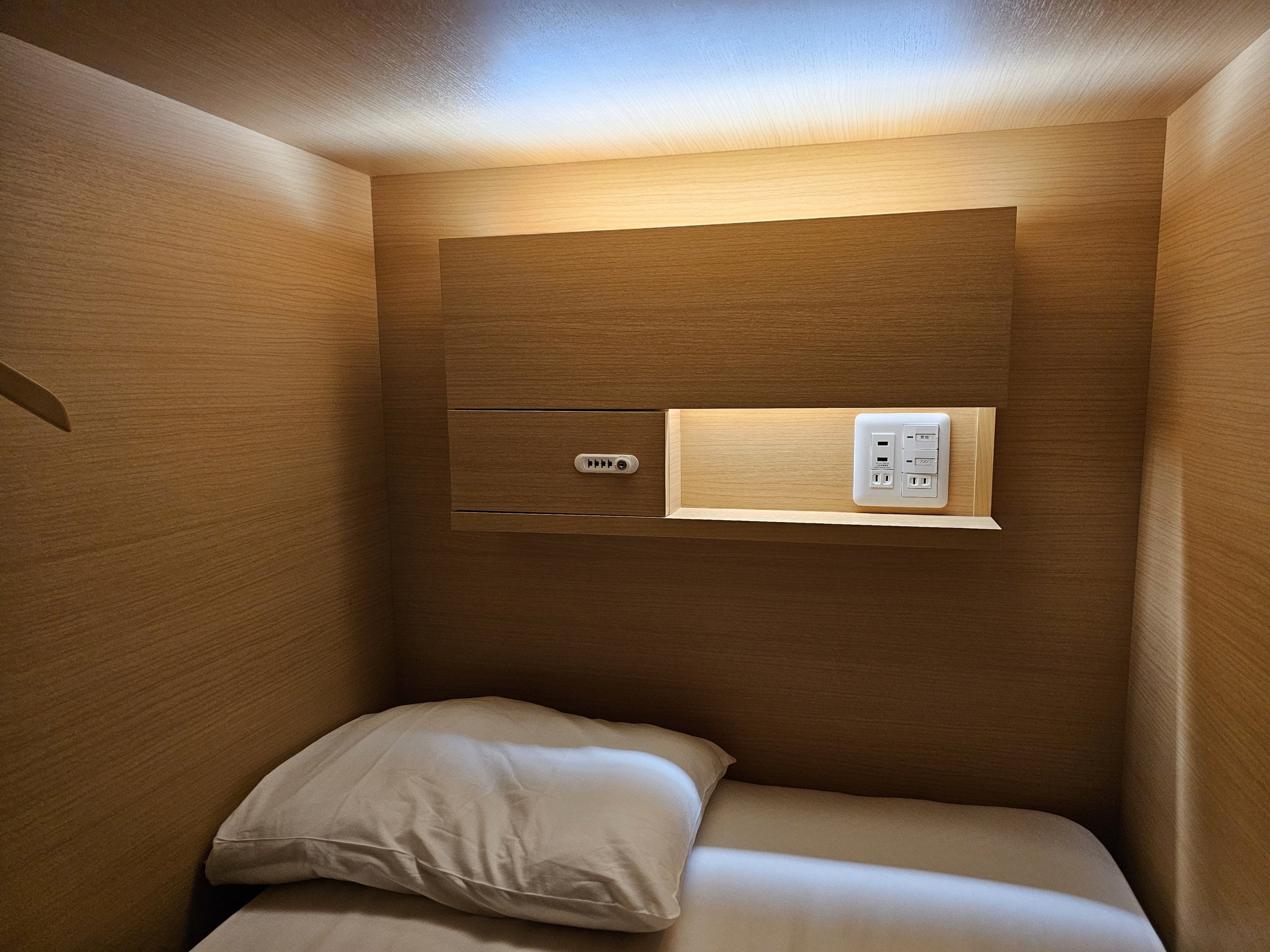 Έχω την κάψουλα νούμερο 8, η οποία είναι η επάνω κουκέτα. Δεν με πειράζει, αλλά αν δεν σας αρέσει να ανεβαίνετε σκάλες, σας συνιστώ όταν κάνετε κράτηση μέσω booking. com να γράψετε στο αίτημά σας ότι θέλετε την κάτω κάψουλα.