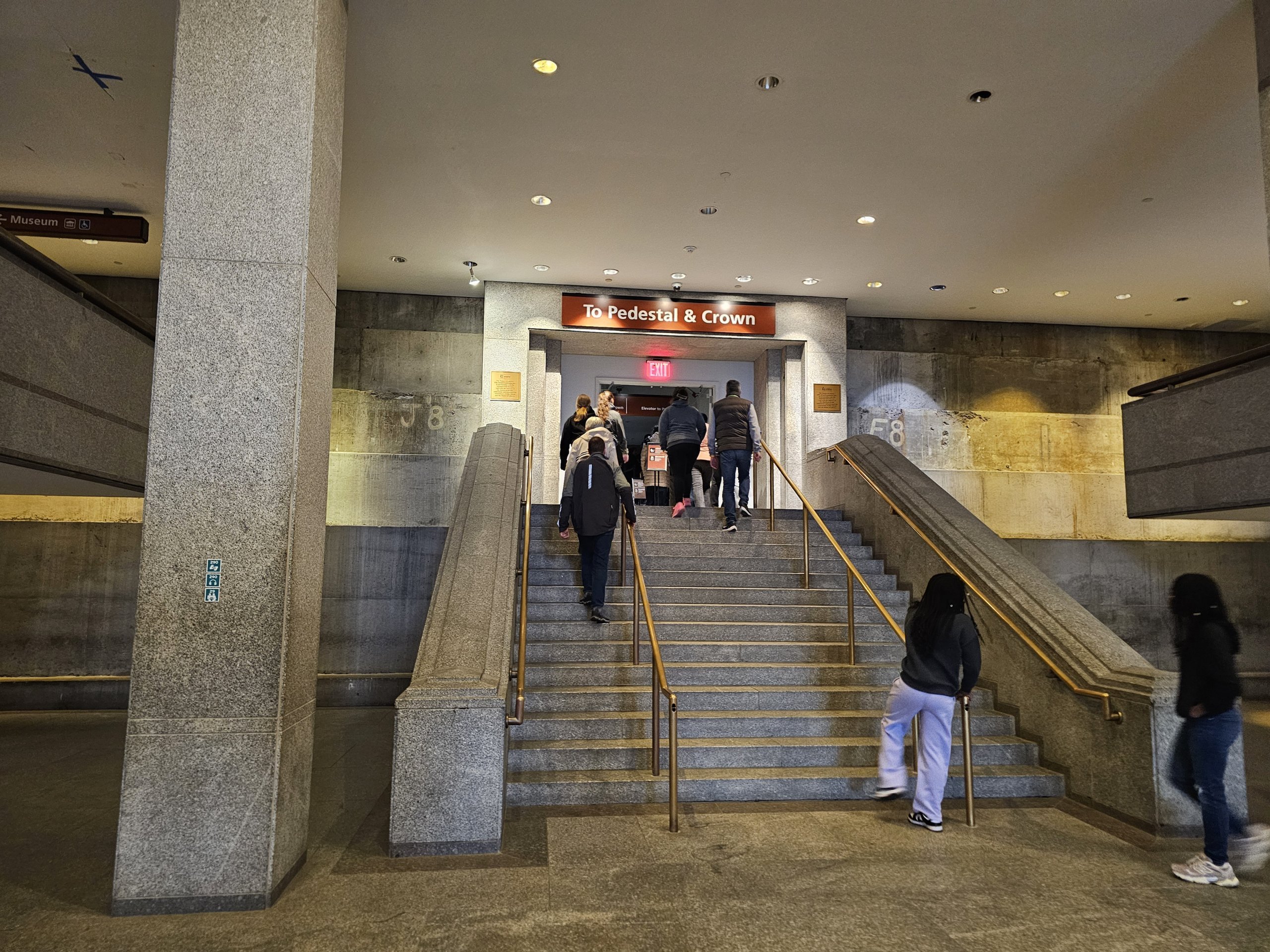 Μπορείτε να εισέλθετε μόνο στο σημείο θέασης του γρανιτένιου βάθρου και στο στέμμα χωρίς αποσκευές. Αυτές μπορούν να αποθηκευτούν στα ντουλάπια έξω από την είσοδο, τα οποία είναι λειτουργικά μετά την τοποθέτηση ενός κέρματος (0,25 usd). Μπορείτε να πληρώσετε μόνο με μετρητά, αλλά στο χώρο υπάρχει ανταλλακτήριο χρημάτων που θα σας αλλάξει τα μετρητά.