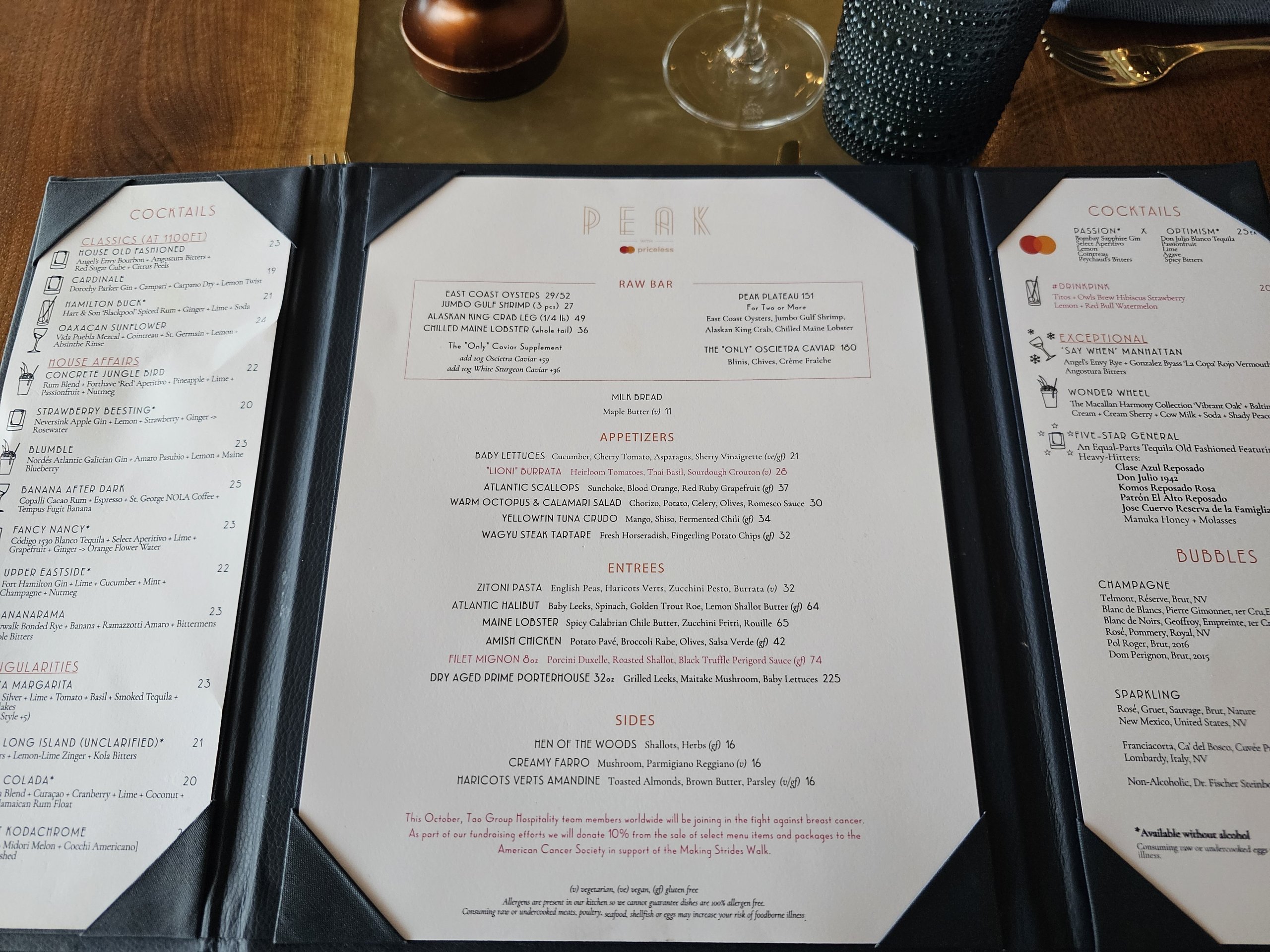 Μπορείτε να δείτε το πλήρες μενού στην ιστοσελίδα του εστιατορίου: peaknyc.com/restaurant-bars.