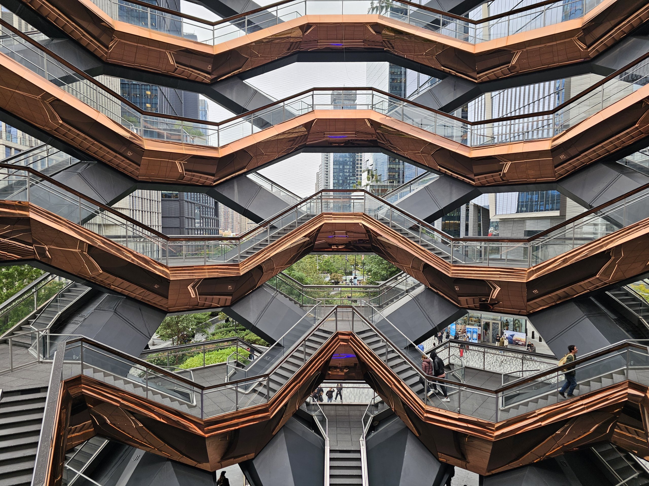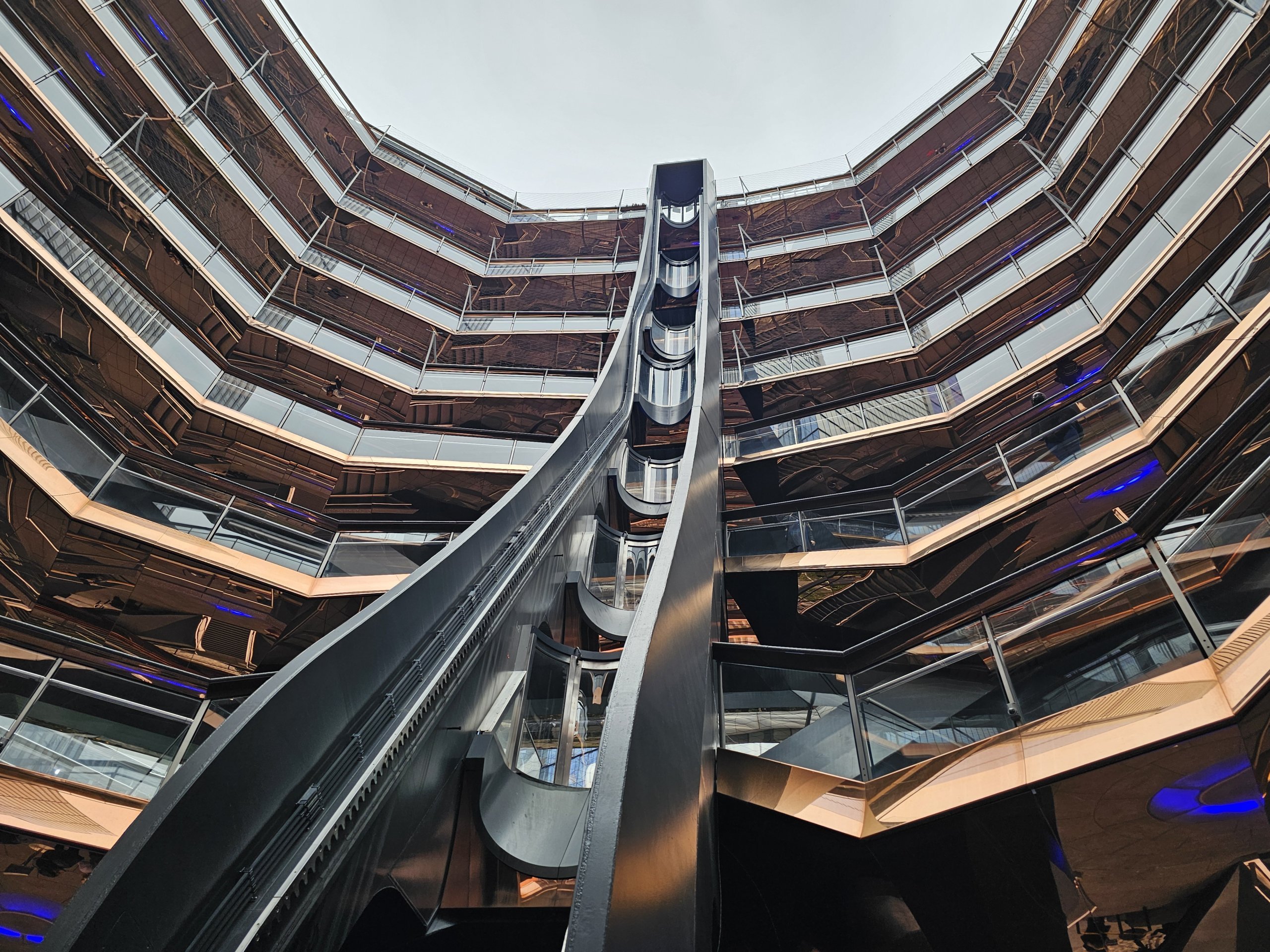 Το κυκλικό σχήμα και η μπρούτζινη πρόσοψη στο εσωτερικό του Vessel δημιουργούν εξαιρετικές και πρωτότυπες φωτογραφίες.