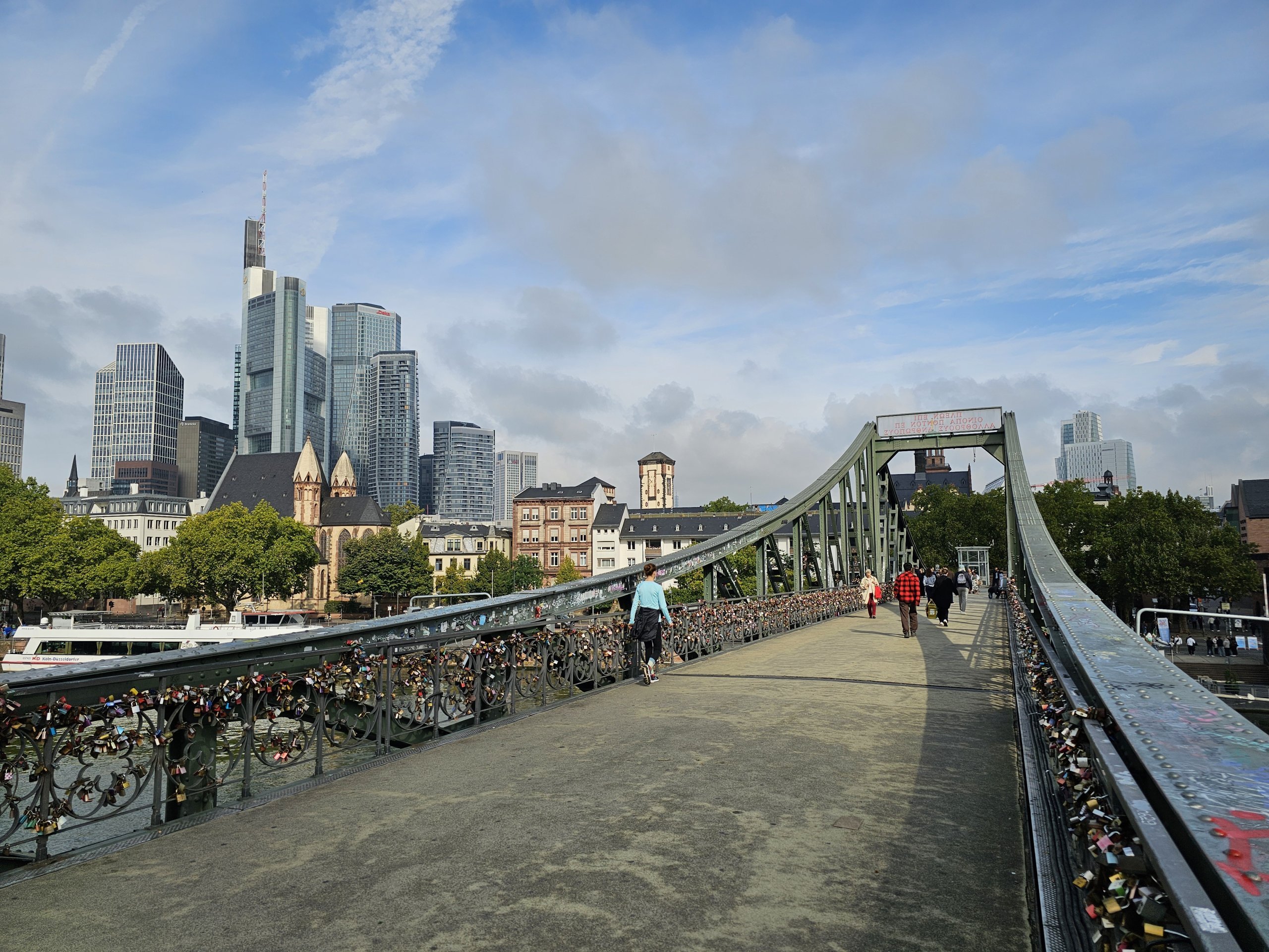 Μπορεί η ίδια η κατασκευή να μην κόβει την ανάσα, αλλά συνιστώ ένα ταξίδι στη γέφυρα για την καλύτερη θέα του σύγχρονου ορίζοντα της Φρανκφούρτης.