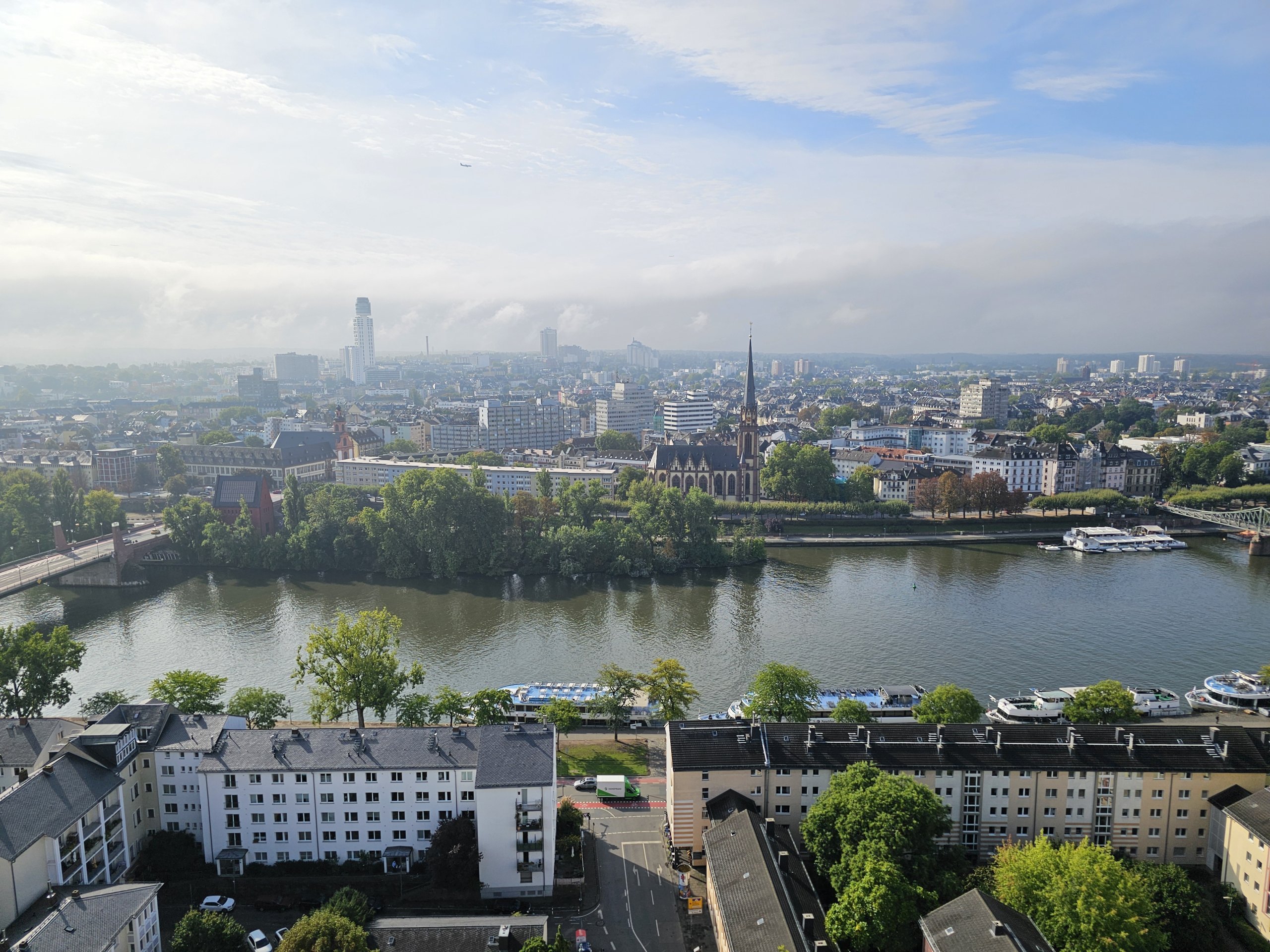 Από εκεί μπορείτε να απολαύσετε την καλύτερη θέα που είχατε ποτέ στον σύγχρονο ορίζοντα της Φρανκφούρτης, τον ποταμό Μάιν και το νότιο τμήμα της πόλης.