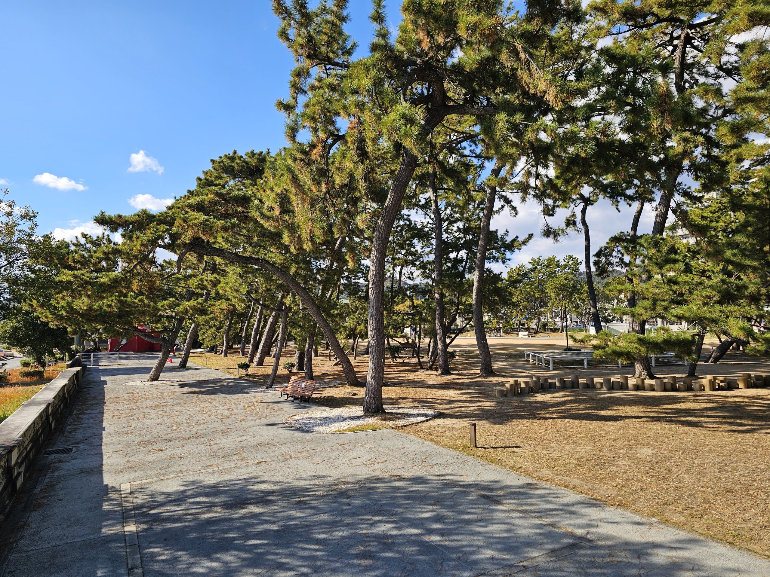 Από την άλλη πλευρά, υπάρχει άφθονος χώρος, ωραία θέα στην ακτογραμμή και, αν η ορατότητα είναι καλή, η γέφυρα Akashi Kaikyō.