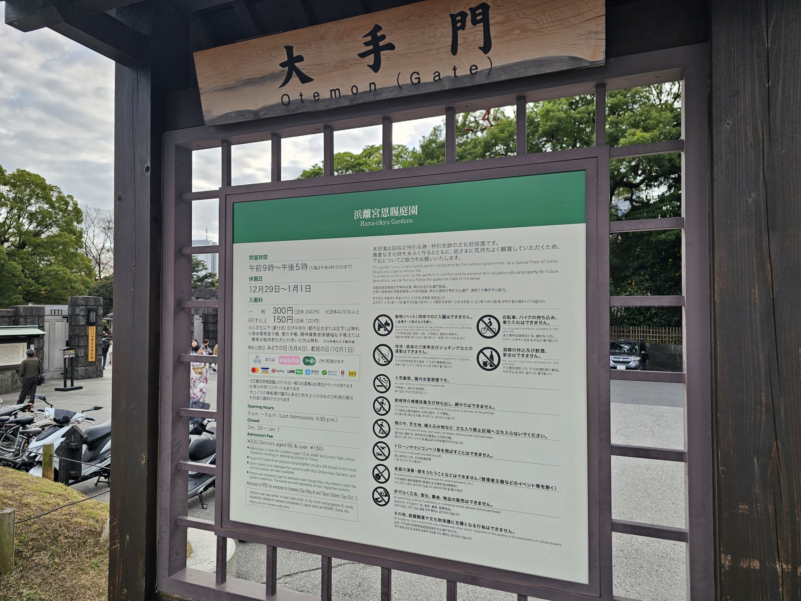 Η είσοδος στους κήπους Hama-rikyu κοστίζει 300 jpy.