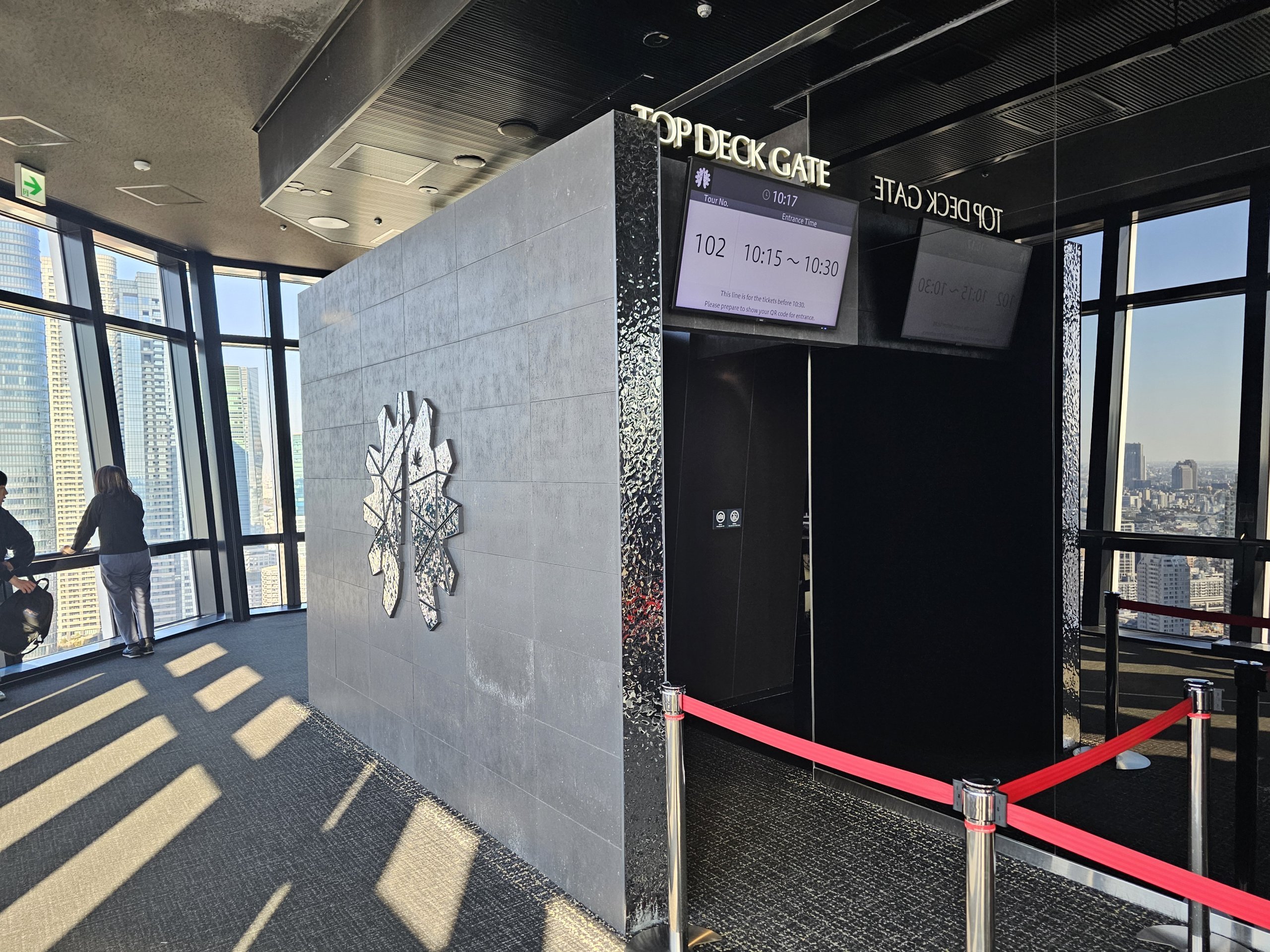 Στο κορυφαίο κατάστρωμα μπορείτε να φτάσετε μόνο με ανελκυστήρα από το κύριο παρατηρητήριο, οπότε η τιμή του κορυφαίου καταστρώματος περιλαμβάνει αυτόματα την επίσκεψη στο κατώτερο παρατηρητήριο στα 150 μέτρα.