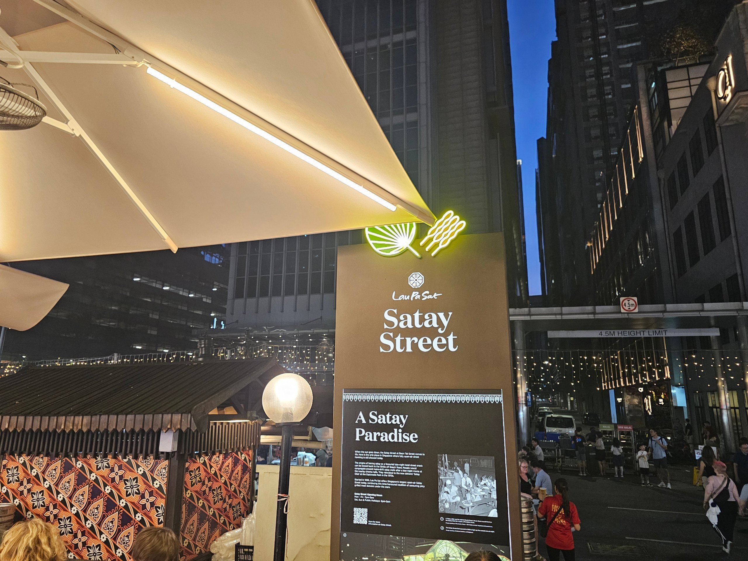Αλλά το βράδυ, η ατμόσφαιρα αλλάζει εντελώς - ο δρόμος μπροστά από το κτίριο κλείνει, δημιουργώντας τη διάσημη Satay Street, όπου ψήνονται δεκάδες σουβλάκια και όλο το μέρος μοιάζει με ένα μεγάλο υπαίθριο φεστιβάλ street-food.