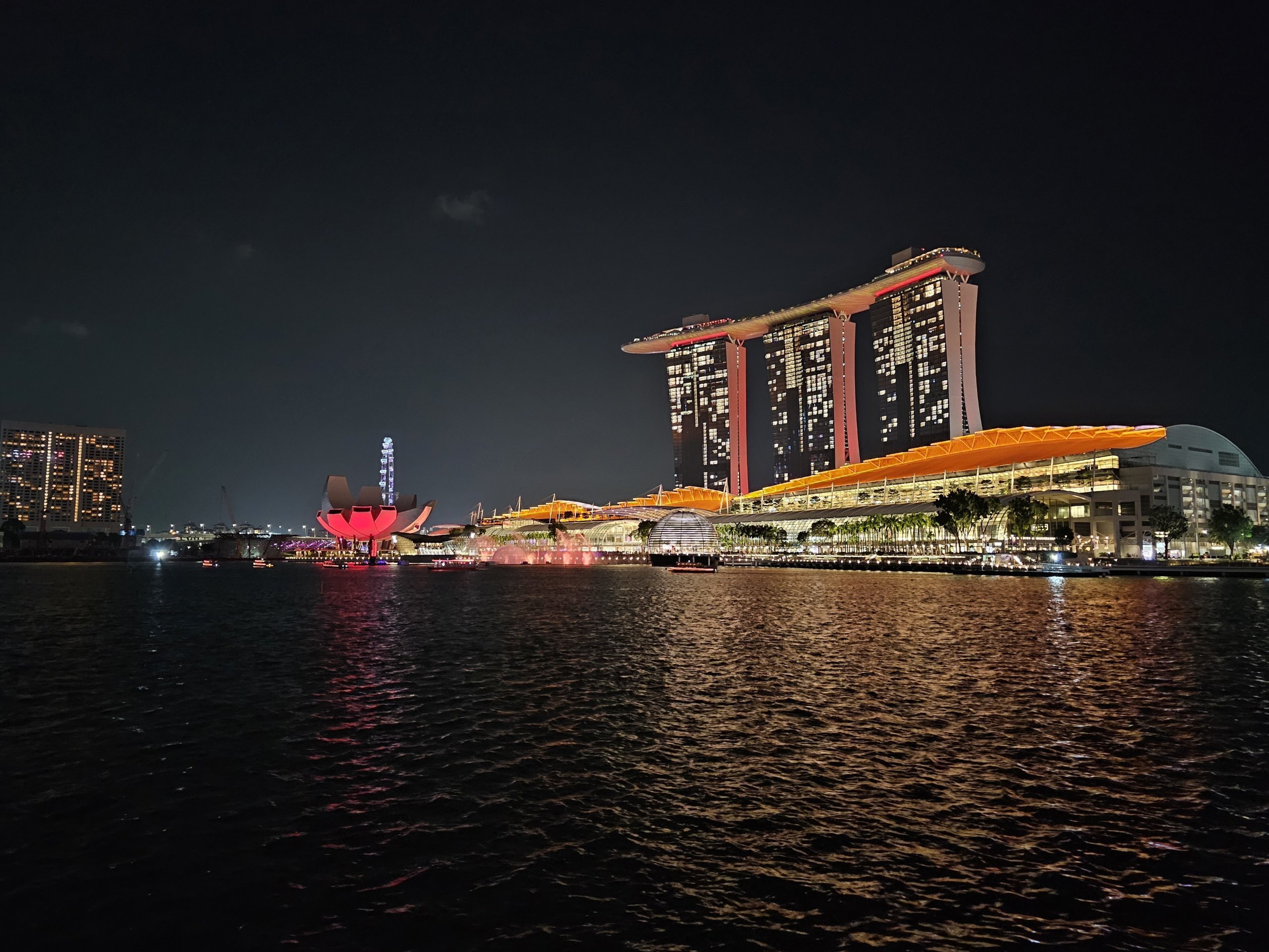 Δεν θέλαμε να είμαστε ακριβώς κάτω από το Marina Bay Sands - έχετε την πιο κοντινή παράσταση, αλλά νομίζω ότι αυτό είναι περισσότερο μειονέκτημα - δεν βλέπετε το συνολικό πανόραμα.