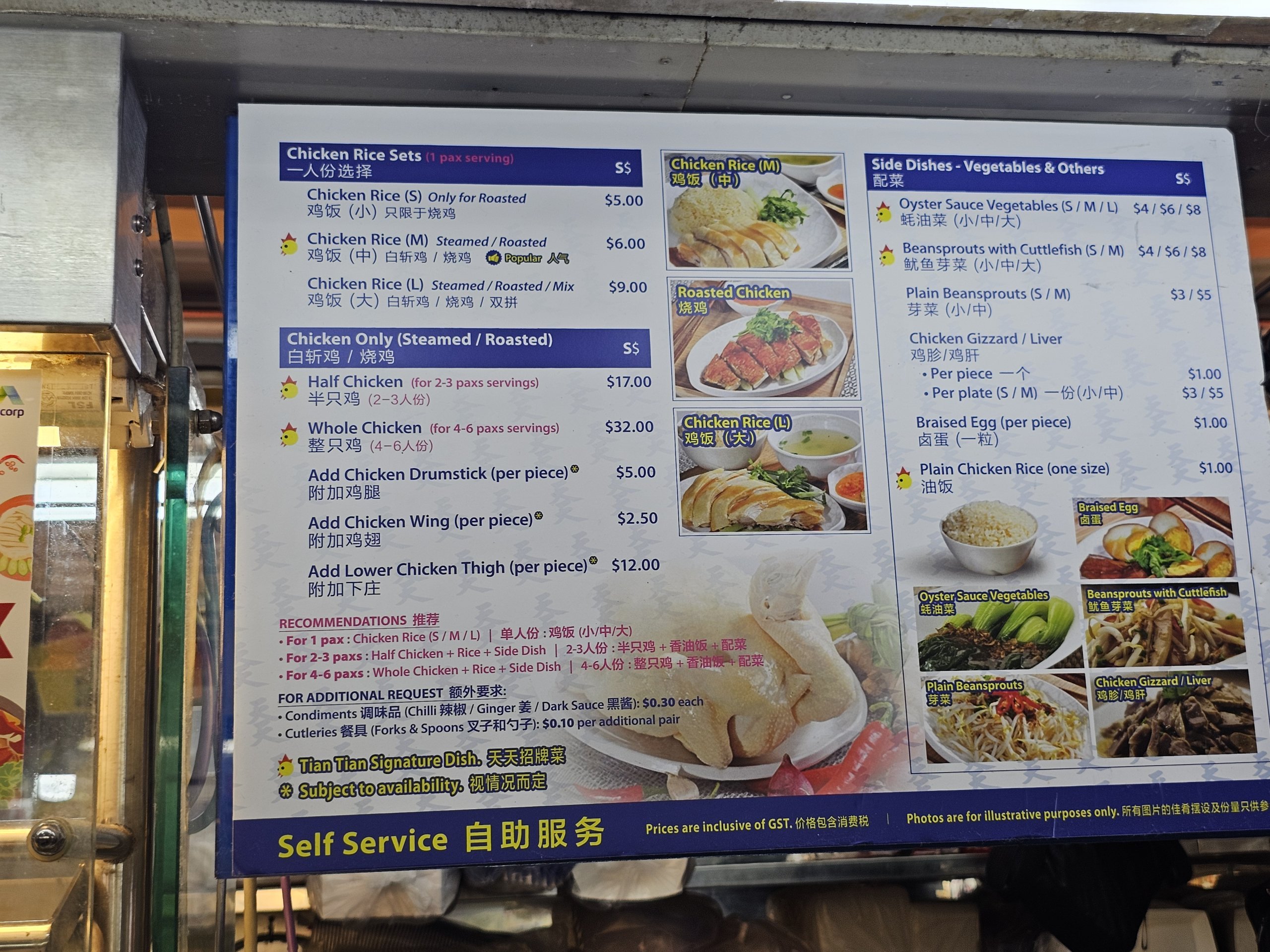Το πιο διάσημο από αυτά είναι το Tian Tian Hainanese Chicken Rice, το οποίο είναι ένας από τους πιο δημοφιλείς πάγκους σε ολόκληρη τη Σιγκαπούρη. Εδώ μπορείτε να δοκιμάσετε το περίφημο ρύζι κοτόπουλου Hainanese, ένα πιάτο που συχνά αναφέρεται ως ένα από τα εθνικά πιάτα της Σιγκαπούρης.