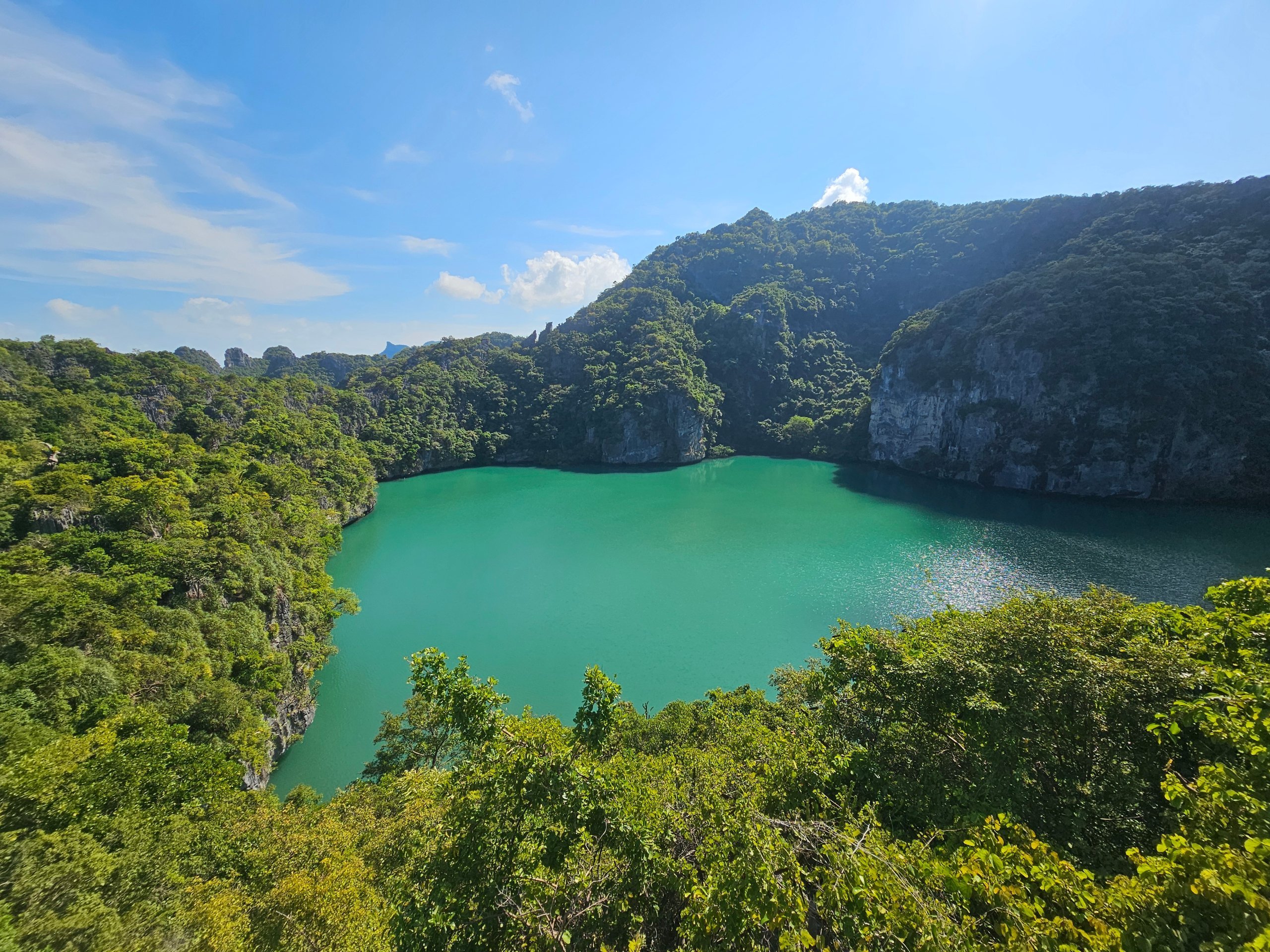 Το Εθνικό Θαλάσσιο Πάρκο Mu Ko Ang Thong είναι ένα αρχιπέλαγος 42 ασβεστολιθικών νησιών, μια σμαραγδένια λιμνοθάλασσα ανάμεσα στους βράχους, θέα στη ζούγκλα και τη γαλαζοπράσινη θάλασσα - ακριβώς το είδος του τοπίου για το οποίο οι άνθρωποι πετούν στην Ταϊλάνδη.