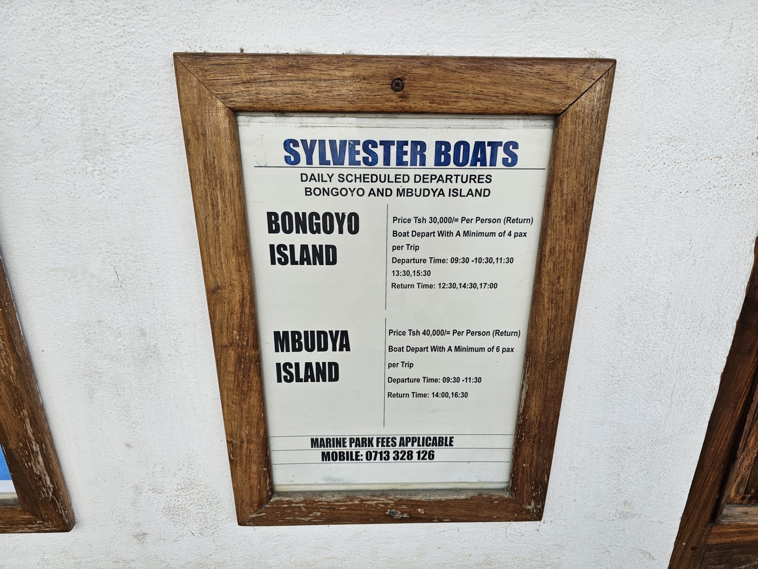 Αν θέλετε να είστε σίγουροι για ένα ταξίδι στο Bongoyo, τότε σας συνιστούμε να πληρώσετε για ένα οργανωμένο ταξίδι με και παραλαβή από το ξενοδοχείο. Η τιμή είναι περίπου 150 usd και μπορείτε να κάνετε κράτηση μέσω του getyourguide.com.