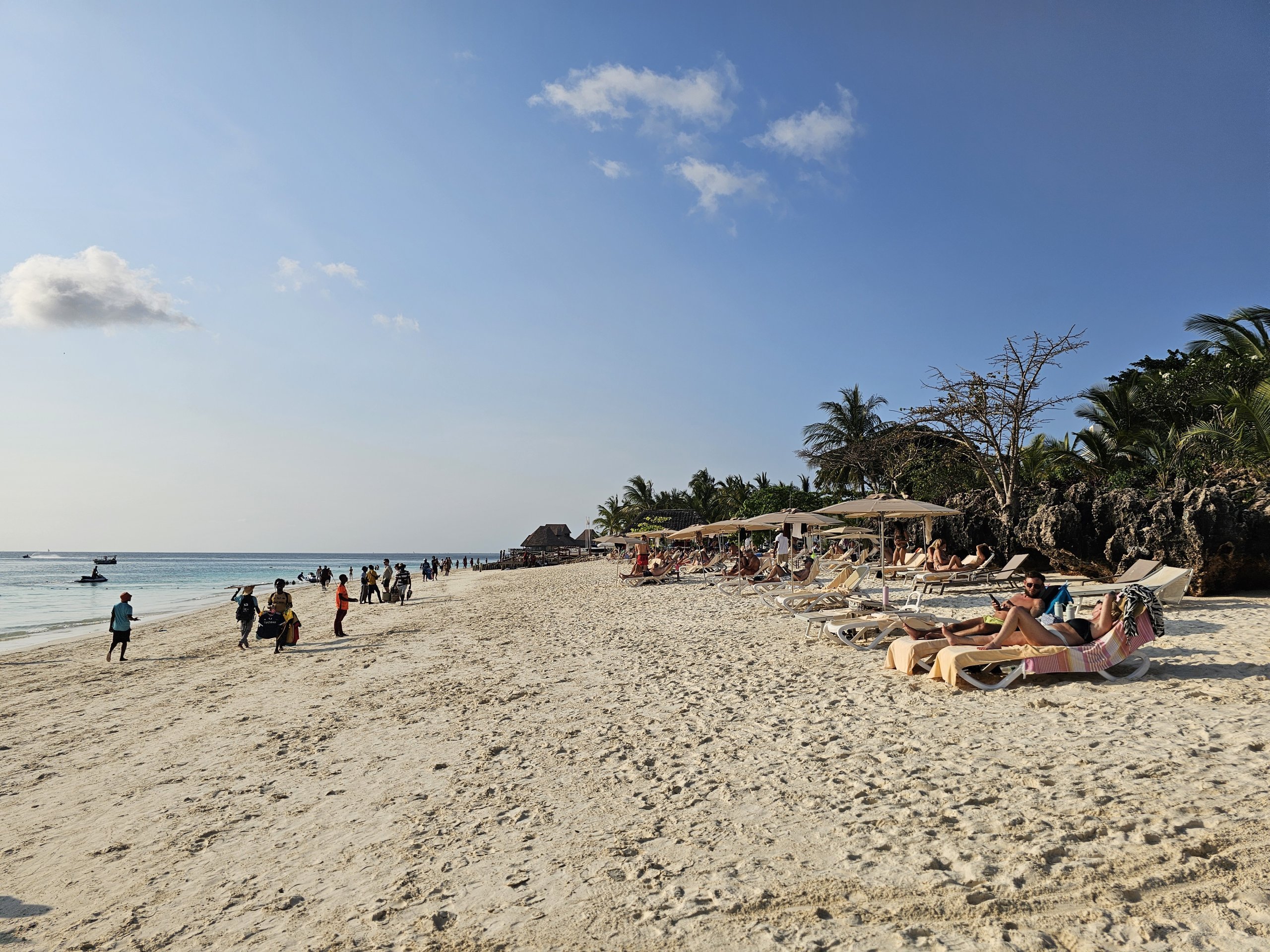 Η τοπική παραλία είναι σίγουρα η ωραιότερη που έχω επισκεφθεί στη Ζανζιβάρη και μπορείτε να κολυμπήσετε στη θάλασσα ακόμη και κατά τη διάρκεια της άμπωτης, σε αντίθεση με τις παραλίες στην ανατολική ακτή.